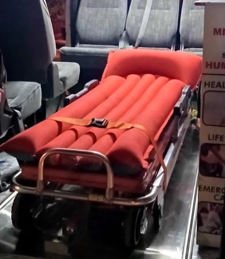 Each ambulance carries sealed, checklist-verified kits (airway, bleeding control, medications, pediatric) inspected at the start and end of every shift. Critical devices (defibrillators, ventilatory aids, suction) undergo scheduled maintenance and function tests.