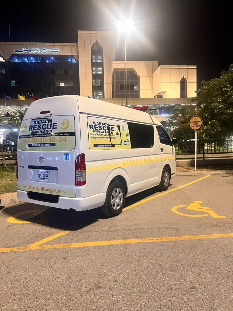Fast, professional ambulance service in Karachi with trained paramedics and full ALS/BLS, cardiac monitoring, and ventilator support on board. Immediate dispatch, live ETA, and safe bed-to-bed transfers for emergencies, inter-hospital, and intercity transport. Sanitized vehicles.
